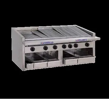 The C-72RS-C Glo-Stone Charbroiler delivers unbeatable grilling performance and capacity. At 72 inches wide, it provides ample cooking space for high-volume operations. Utilizing ceramic briquettes, it delivers even heat for consistent results and authentic grilled flavor. Built with 95% stainless steel, this charbroiler is durable and easy to maintain, making it a reliable addition to any commercial kitchen. The EZ tilt grease management system and water tubs streamline cleanup while adding convenience. The 6-inch service shelf with a utility bar enhances productivity, making the C-72RS-C a must-have for busy kitchens that prioritize quality and efficiency.