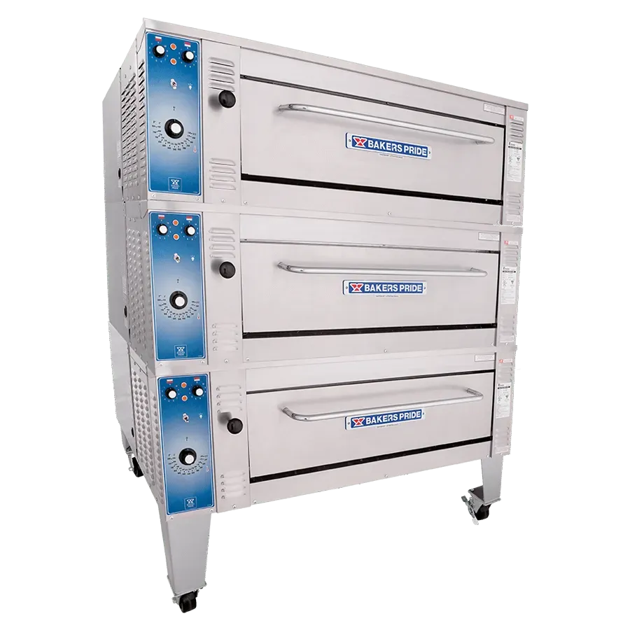 The Bakers Pride® model EB-3-8-3836 pizza oven is ideal for high-volume restaurants, offering the same durability and performance as our gas deck ovens with the low maintenance of an electrical system. This triple-stacked model has three steel decks with 8” deck heights. The independently controlled, U-shaped heating elements on top and bottom allow for uniform temperatures and perfectly balanced baking. This model is constructed with heavy-duty, .25" angle iron frame, which is fully welded to allow for stacking.