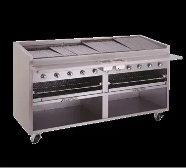 The F-72RS-C Glo-Stone Charbroiler is the ultimate solution for large-scale grilling. Its 72-inch grilling surface provides ample space for high-volume cooking, while the ceramic briquettes ensure even heat distribution for consistent results. Built from 95% stainless steel, it’s durable and easy to maintain. The EZ tilt grease trough and water tubs enhance convenience, while the 6-inch service shelf with a utility bar offers added functionality. With adjustable legs for flexibility, the F-72RS-C combines performance and reliability, making it an essential tool for busy commercial kitchens.