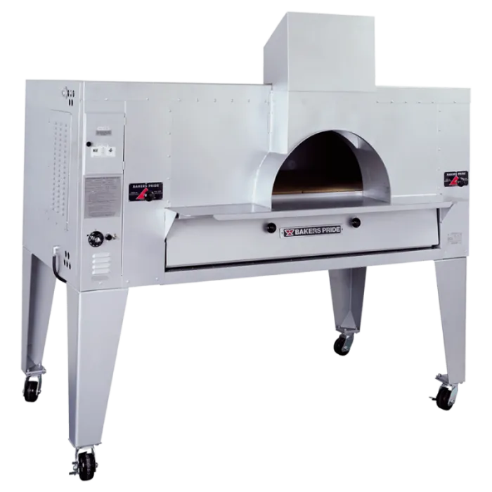 The Bakers PrideĀ® model FC-816 pizza oven combines the ambiance of a traditional, old-world brick oven with the convenience, control, and precision of modern technology. This model has a steel-reinforced arched opening with a visible, open-flame burner to make loading pizzas easy while create dining atmosphere. It also offers heavy-duty, stainless steel construction with heavy-duty .25" angle iron frame, which is fully welded to allow for stacking on our standard deck ovens. The oven chamber features one Cordierite deck with 10" deck height and independently controlled top and bottom heat dampers for perfectlybalanced results. To further enhance performance, the brick-lined ceiling delivers more top heat and speed cooking and temperature recovery.This oven is designed to be built in behind a decorative facade of brick, stone, or tile to create an old-world, exhibition kitchen. You also have the choice to simply display this oven in standard stainless steel or finish with black-powder-coated control panels andhardwood door handles for an elegant presentation.