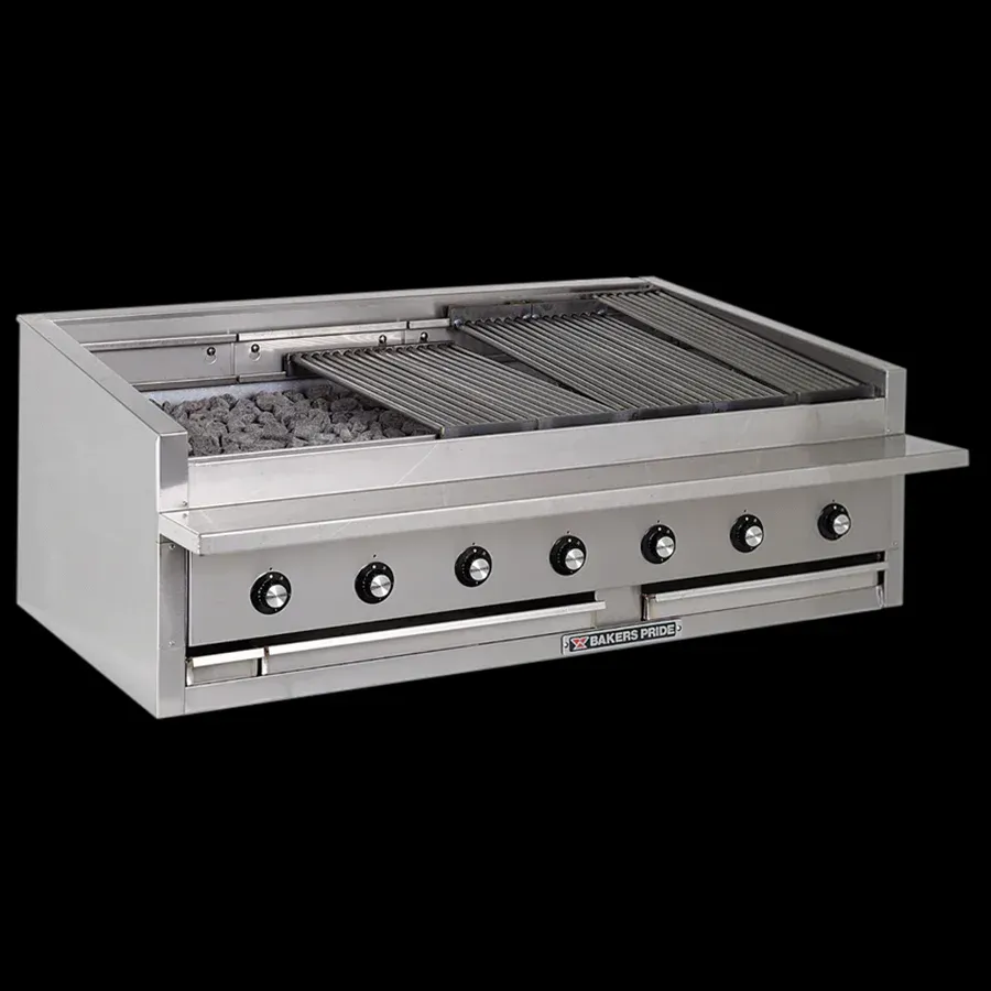 The L-60RS-C Glo-Stone Charbroiler combines professional-grade performance with advanced ceramic briquette technology. With a 60-inch grilling surface, it offers plenty of room for cooking a variety of menu items at once. The Glo-Stone design ensures even heat distribution, while the EZ tilt top grate simplifies grease management. Made from durable stainless steel, it’s built to last in demanding commercial kitchens. The added 6-inch service shelf provides extra workspace for prepping and plating. Deliver consistent, high-quality results with the L-60RS-C and take your grilling to the next level.
