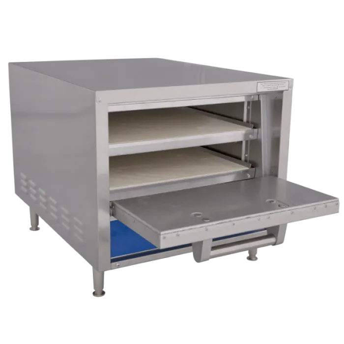 The Bakers Pride® model P18S oven is designed for pizza, pretzels, flat breads, and other bakery products. Bake directly on the decks, on screens, or on baking sheets. This oven features one baking chamber with two Cordierite decks and a 3.25" deck height. This model comes standard with a stainless steel exterior, 4” adjustable legs, and a 15-minute electric timer with continuous-ring alarm and manual shut-off. The P18S is available with 120, 208, or 240 V; however, 120 V is not recommended for fresh-dough pizza. International voltages are available.