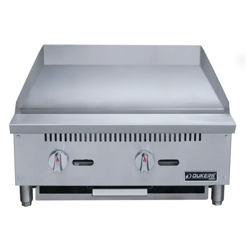 Take control like never before with refrigeration. Introducing the Dukers USA, DCGM24, Griddle With Two Burners. This heavy-duty griddle is designed to meet the demands of a commercial restaurant setting. With a 24" cooking surface, 20" depth, and 3/4" thickness, it provides ample space for cooking a variety of dishes simultaneously. The dimensions of 24 x 30 x 15 1/4 make it compact yet efficient, perfect for any kitchen layout. The griddle features two burners, allowing for precise temperature control and even heat distribution. Whether you're searing steaks, flipping pancakes, or sautéing vegetables, this griddle delivers consistent results every time. Upgrade your restaurant's cooking capabilities with the Dukers USA, DCGM24, Griddle With Two Burners.