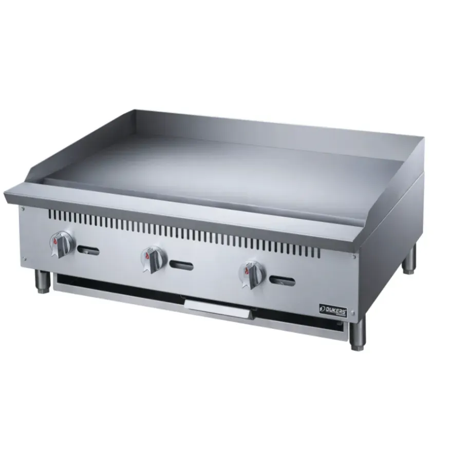 Ignite freshness and excellence effortlessly with the Dukers USA, DCGM36, Griddle With Three Burners. This heavy-duty griddle is designed to meet the demands of a commercial restaurant setting, ensuring exceptional performance and durability. With its 36" size, 20" depth, and 3/4" thickness, this griddle provides ample cooking space for preparing a variety of dishes simultaneously. The three burners offer precise temperature control, allowing chefs to cook different items at different heat levels simultaneously. The griddle's dimensions of 36 x 30 x 15 1/4 make it a versatile addition to any kitchen layout. Whether you're searing steaks, sautéing vegetables, or flipping pancakes, this griddle delivers consistent and even heat distribution for perfect results every time. Upgrade your kitchen with the Dukers USA, DCGM36, Griddle With Three Burners and experience the difference in quality and performance.