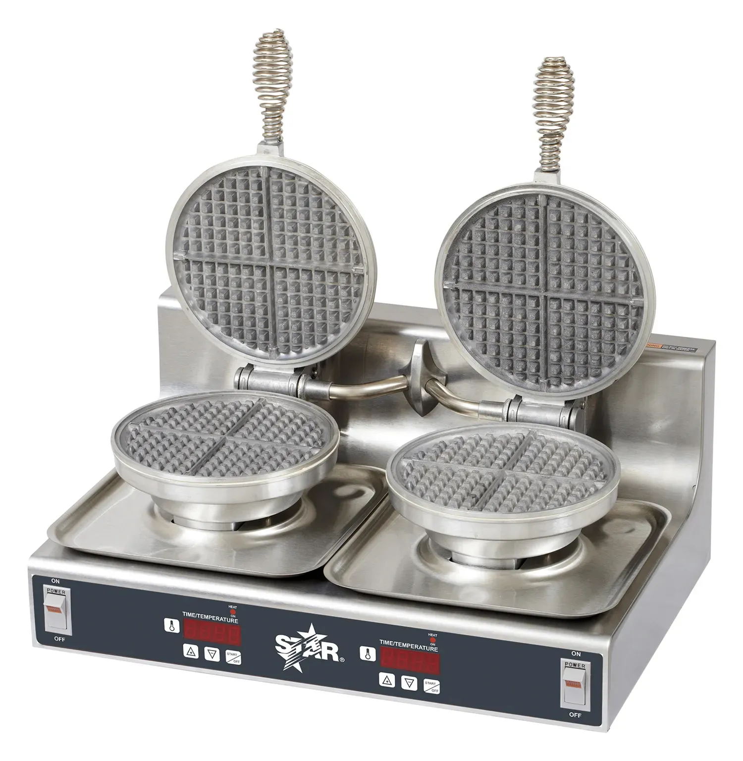 Star waffle bakers are designed to be a reliable and consistent solution for high volume waffle production. The electronic controls and timer, combined with the cast-in heating element, provide superior consistency and uniformity. The durable overall design is made to offer years of maintenance-free service.