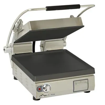 The Star Pro-Max 2.0® sandwich grills are designed to cook wraps, sandwiches, chicken breasts, hamburgers, and much more. The design is compact and portable providing flexibility. These grills can come with smooth, grooved, or combination surfaces, made of aluminum or iron. The available electronic temperature control and timer are industry leading options.