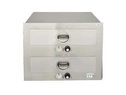 The Toastmaster 3B80AT72 built-in warming drawer has two drawers and is designed to hold cooked foods at a safe, thermometer verified serving temperature with proper moisture content. Holding temperature and moisture content can be set for the type of food being held. This model holds a 20" x 12" x 5" steam pan and utilizes 208-240 volt power.