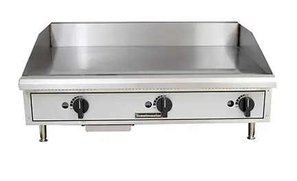 Toastmaster manual countertop gas griddles are the most economical and flexible griddles in the food service industry. They offer unsurpassed performance, combining a proven control system with Toastmaster quality and durability. Ships in Natural gas Field convertible to LP with orifices included. 36” wide