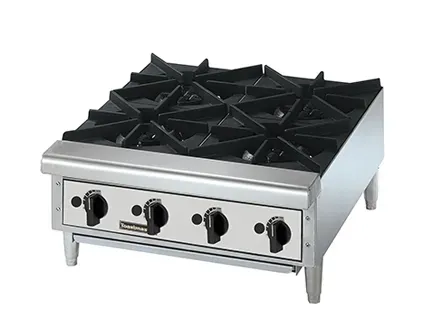 Toastmaster gas hot plates are designed for years of maintenance free operation and reliable cooking performance. Whatever the menu item, Toastmaster hot plates will out perform the competition. The TMHP4 gas hotplate features four burners with 22,000 BTUs per burner, a standing pilot for each burner, and ships Natural Gas ready with LP conversion kit included.